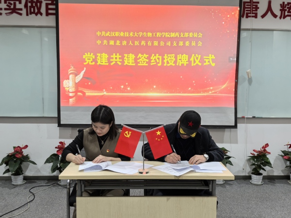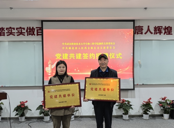 新闻网讯(通讯员年新颖)11月13日,武汉职业技术大学生物工程学院制药党支部与湖北唐人医药有限公司党支部联合开展“党建共铸‘良方’育英才,产教同烹‘妙药’谱华章”主题党日暨支部共建签约。双方通过重温入党誓词、专题党课、共建签约、经验分享等环节,探索党建引领下产教融合新路径,为医药健康产业高质量发展注入红色动能。