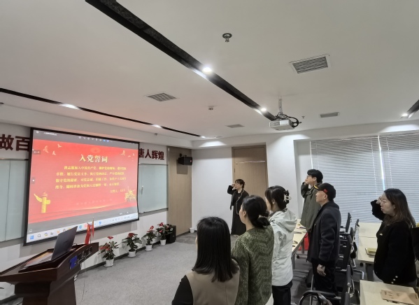 活动在庄严的入党誓词中拉开序幕。湖北唐人医药有限公司戴俐经理领誓,全体党员的铿锵誓言回荡会场。“每一次重温誓词,都是对初心的拷问与责任的强化。”生物工程学院党员教师李田霞感慨,“校企共宣誓,更让我们意识到育人使命与行业担当的深度融合。”