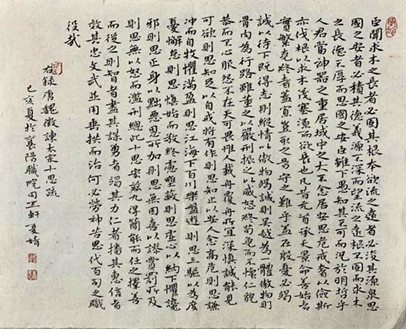 夏婧热爱书法,是该校千山·书画协会会长。2019年9月,在社团指导教师孙建军的指导下,她顺利完成并提交作品《谏太宗十思疏》。此次征集活动不仅仅是一次有意义的文化艺术展示,同时给书法爱好者提供了一个交流学习的平台。