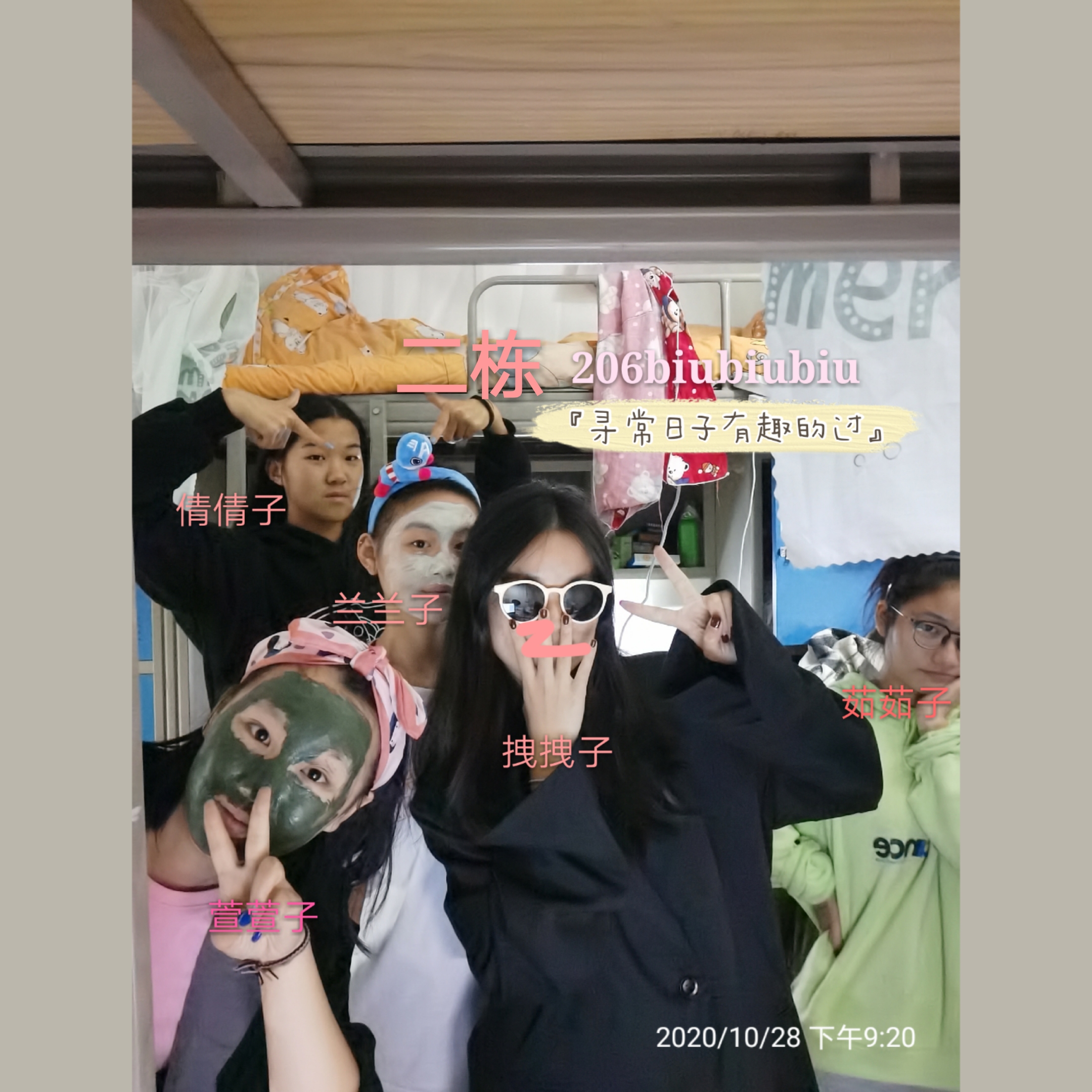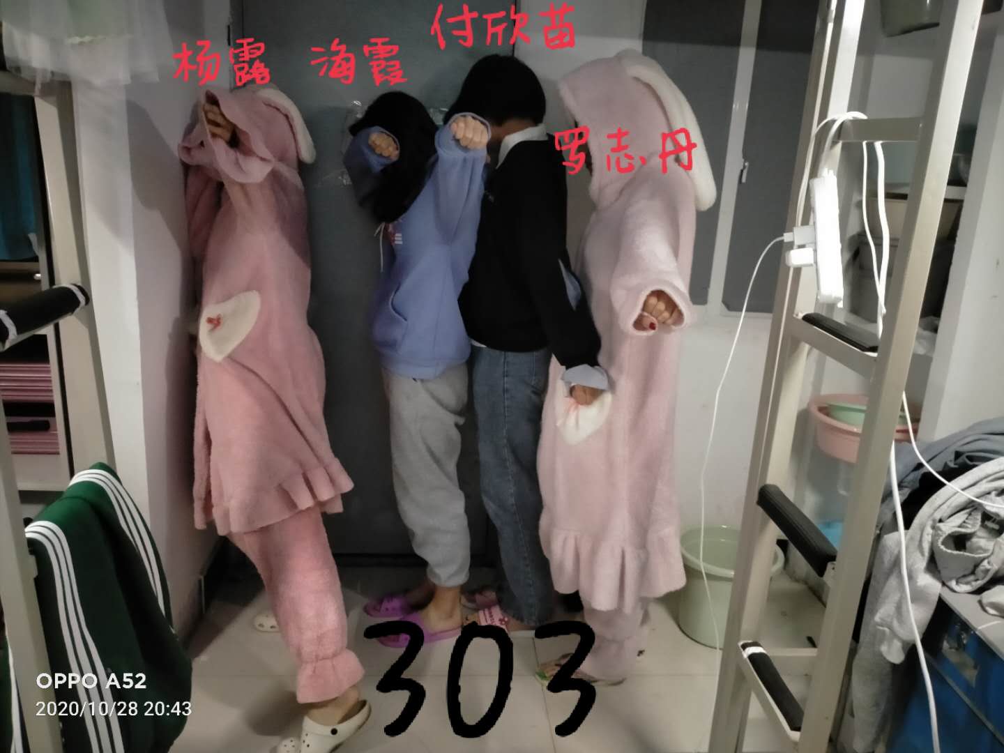 “最初听到要用这种方式查寝时,还以为是开玩笑。我们宿舍为了拍照都在相互帮忙,氛围相当和谐,有一个舍友还扎了冲天辫。突然发现舍友们都很有搞怪的天赋,像是解锁了新技能,大家也都乐在其中。”2020级体育运营与管理柯亚红同学开心的说。