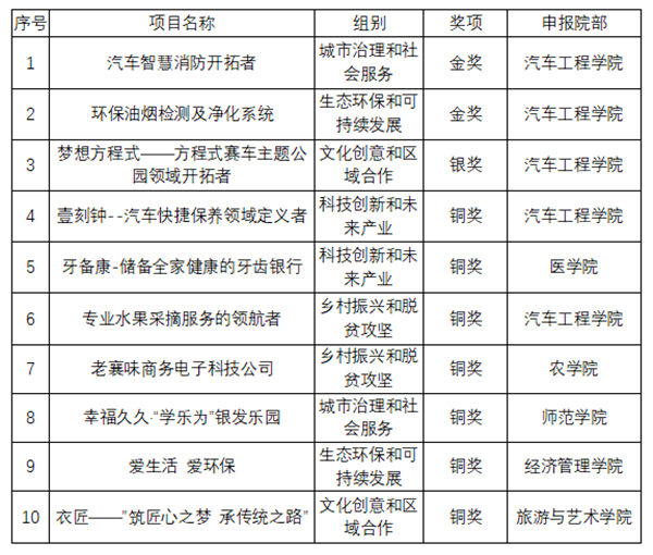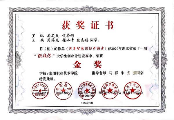 近日,第十一届“挑战杯”湖北省大学生创业计划竞赛揭晓。襄阳职院10件作品参赛,两件获金奖,一件获银奖,七项获铜奖。据悉,两个金奖项目正代表湖北省参加全国“挑战杯”创业计划大赛。