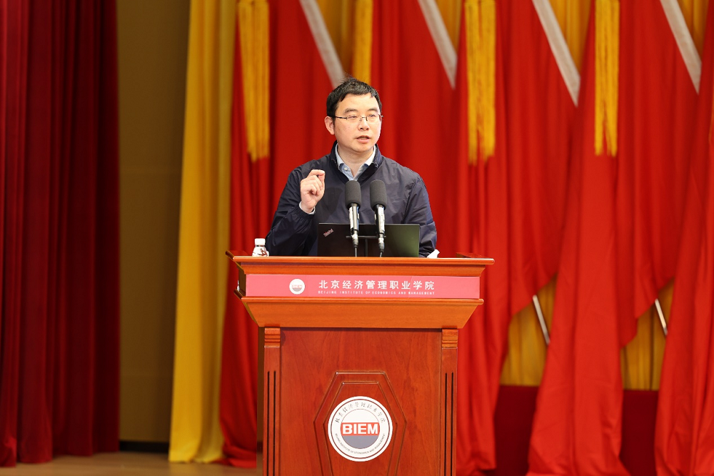 张连城在致辞中表示,北京经济管理职业学院积极对接国家“十四五”规划和2035年远景目标纲要,将数字经济发展与学校专业设置、专业群布局有机融合,推动专业内涵升级和专业课程体系的数字化改造,加快落实职业教育新版专业目录,培养担当民族复兴大任的高素质经济管理类人才。