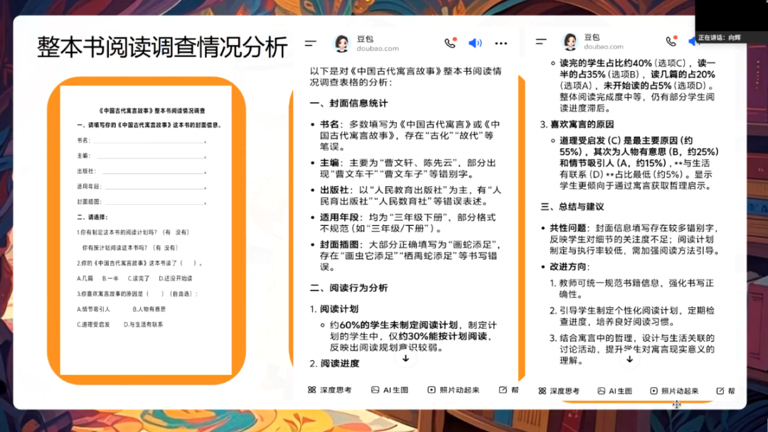 案例剖析环节亮点纷呈,4位一线教师线上线下联动,展示智能体在多学科、多学段的创新应用。