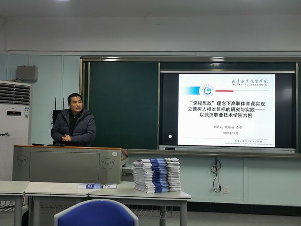 培训会上,副主任胡启权老师,做《“课程思政”理念下高职体育课实现立德树人根本目标的研究与实践——以武汉职业技术学院为例》报告、并对郭沙副校长的《以课程体系重构为抓手,推荐“三教”改革》进行深入解读。浦北娟老师从《全国高职院校体育工作第一批“一校一品”师范基地立项项目巡查诊断》、《不忘初心、牢记使命”新时代高校体育创新发展论坛》、体育教师足球技能大赛、2019年全国高等职业院校技能大赛及2019年秘书处会议及年会等会议和大赛中,讲述体育教师今后在教学能力、技术能力、教学方法创新等方面的努力方向。