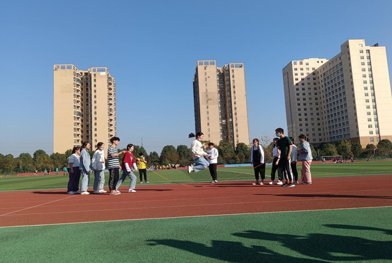 跳长绳作为一项传统的中国体育运动项目,在我国有着悠久的历史,流传至今一直深受青少年的喜爱。通过跳长绳不仅可以促进学生心肺功能的提高,培养学生良好的意志品质,还可以培养学生团结协作的精神。新生杯系列赛,为校园体育文化的发展营造了良好的氛围,让同学们在“教”“练”“赛”中享受体育的快乐。
