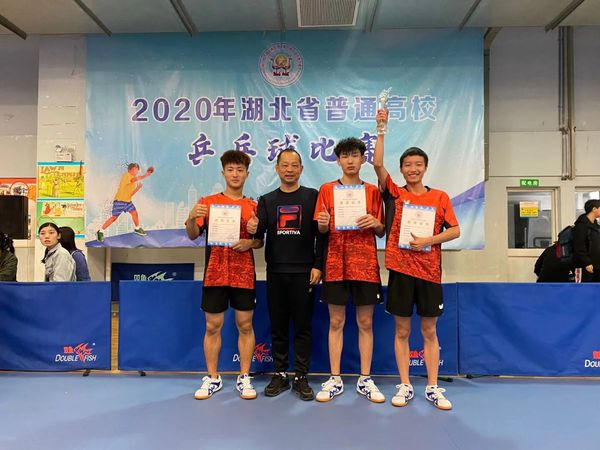 (通讯员 周圣平 钟娜 成盼盼)11月15日,2020年湖北省普通高等学校乒乓球赛在武汉体育学院圆满落幕。我校乒乓球代表队在领队胡启权、教练周圣平、钟娜带领下,团结协作,顽强拼搏,蝉联男子丙组团体冠军、单打第二和第五的好成绩。