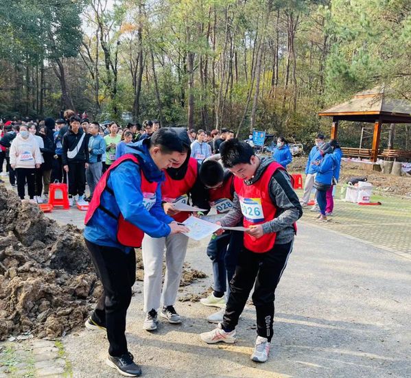 本次比赛由湖北省大学生体育协会主办,武汉体育学院承办,共有来自湖北省各类大专院校的数十支队伍参加。定向运动是利用地图和指北针依次到达地图上所示的各个地点,以最短时间到达所有地点为胜,通常在森林、郊外和城市公园进行,自1895年在瑞典首都斯德哥尔摩的军营开展定向运动比赛至今,定向运动已有一百多年历史,深受户外运动爱好者喜爱。江夏青龙山,是2019年世界军人运动会定向越野比赛场地,也是湖北省大学生定向越野赛事首次采用纯野外场地,地形琐碎复杂,爬高量大,挑战性强,比赛难度大。比赛中运动员为了尽早找到自己的点位目标,常常需要穿过山涧杂树林,或在小腿高的杂草中穿梭通行,是对学生体力和意志力的较大考验。