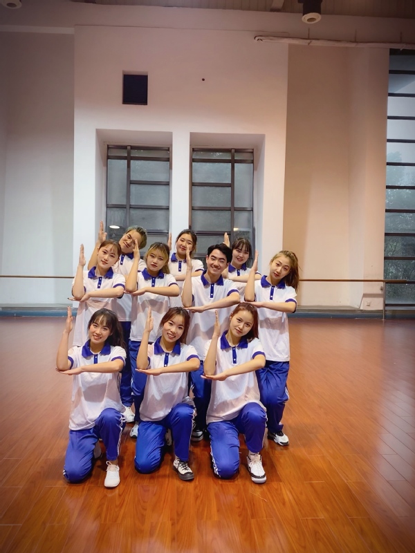 我校健美操队由张易丹、黄晶、赵欣月、章奥纳、柯淼淼、赵诗雨、郭杨婉莹、岳佳童、胡萱、黄倩倩、李文佳、任卓然、王静鑫、徐佳豪、周尔铨、罗文强等16名队员组成,分别来自建筑学院、商学院、旅游学院、机电学院、文传学院和电信学院。16名青春学子酷爱舞蹈,经常活跃在学校的舞台和赛场上,他们都是两位教练从全校舞蹈爱好者中挑选出的精英。本次的省赛同国赛时间上有冲突,项目上有异同,但要求不一样,队员不一样,对大家都是一种全新的考验!从新学期开学第一天起,队员们在两位教练指导下,利用课余时间,精心打磨功夫,苦练基本功,编排队形,精改动作,强化体能,凝练团队,既不误国赛的训练,也精练省赛的队伍。从最初的一天一练,到后来一天多练;从各小组分练,到大集体合练,摸索和创造出了新的训练模式。