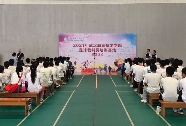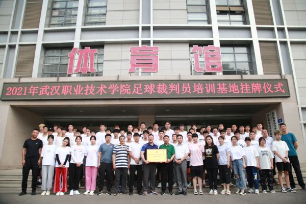 (通讯员 吴向宁 顾思思 钟娜)6月22日上午,武汉市足球协会与武汉职业技术学院共建足球裁判员培训基地暨揭牌仪式在体育馆主馆举行,中国足协裁委会委员、武汉市足协副秘书长胡剑虹,中甲现役裁判员、武汉市足协裁判员讲师李旭,我校发展合作办公室主任杨忠旭,武汉职业技术学院体育美育工作部主任汪胜等师生参加揭牌仪式。