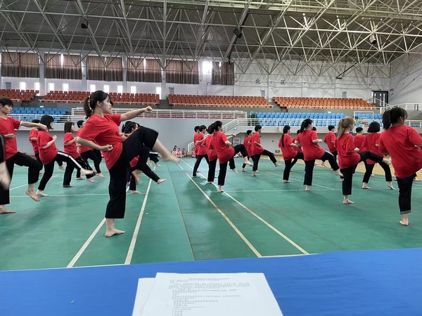 参与本次教学展示的有8个节目,分别是瑜伽《我和我的祖国》,团体舞《我爱这蓝色的海洋》,健美操《我们都是追梦人》,跆拳道《百岁少年》,形体训练《晃手小套路》,诗朗诵《体育颂》,啦啦操《没有共产党就没有新中国》,武术《舞动的中国印》,参与展示的师生多达500余人。老师们在一年的专项教学中兢兢业业、一丝不苟、不断创新,带来了一场精彩的课堂教学展示成果。