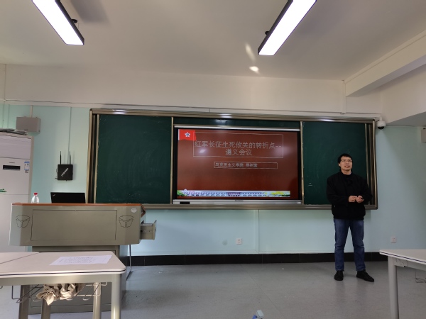 吴老师以《红军长征生死攸关的转折点——遵义会议》为题,从遵义会议召开的背景讲起,对会议的召开的内容、延续级意义进行了详细的阐述。