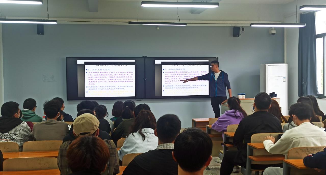 此次体育文化节排球项目旨在打造育人平台与品牌,加强体育美育工作部与二级学院的交流,使学生了解排球发展史、学习体育精神、培养排球兴趣。本次活动中,体育美育工作部刘刚教师和电子信息工程学院辅导员陈秋寰教师分别从排球理论与实践的专业角度、思想政治教育的领悟与提升方面进行讲授,并对参赛队员、裁判员,以及电子信息工程学院的学生进行了排球裁判法和技能的现场培训指导。