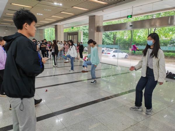 机电工程学院王芳老师也上场参加了比赛,为学生们做了踢毽子示范,只见毽子在王老师的脚下翻转跳跃,高超的技术让同学们大开眼界。王芳老师还说,踢毽子时有种回到童年美好时光的感觉,希望以后能有机会参加更多这样有趣的比赛。