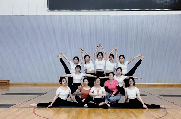 近几年,健身瑜伽作为一项兴起的大众健身项目,逐渐受到大众的认可和青睐,各大院校也纷纷开设瑜伽课,成立瑜伽社团。我校瑜伽队就像一个年轻有活力的孩子,充满了阳光与朝气;就全国瑜伽进校园整体情况而言,武职瑜伽队亦是走在了潮流前线,充满了新生力量的冲劲与韧性。校瑜伽队师生们一起铆足劲加强技术训练,精心编排动作,不断精进自己的体式及细节,力求做到最好。不论是枯燥的素质练习,还是难度大的瑜伽体式,队员们都一丝不苟、精益求精,大家克服高温、期末学业繁重等各种困难,利用一切业余时间,每人每天数次在体育馆挥汗如雨,一个动作细节都重复几十遍甚至上百遍,一套套动作拉下来让人精疲力竭、疲惫不堪,但是没有一个人放弃,22个人坚持到了最后,为武汉职业技术学院争得了荣誉。师生们一起用实实在在的行动践行和诠释了武职的匠心精神!