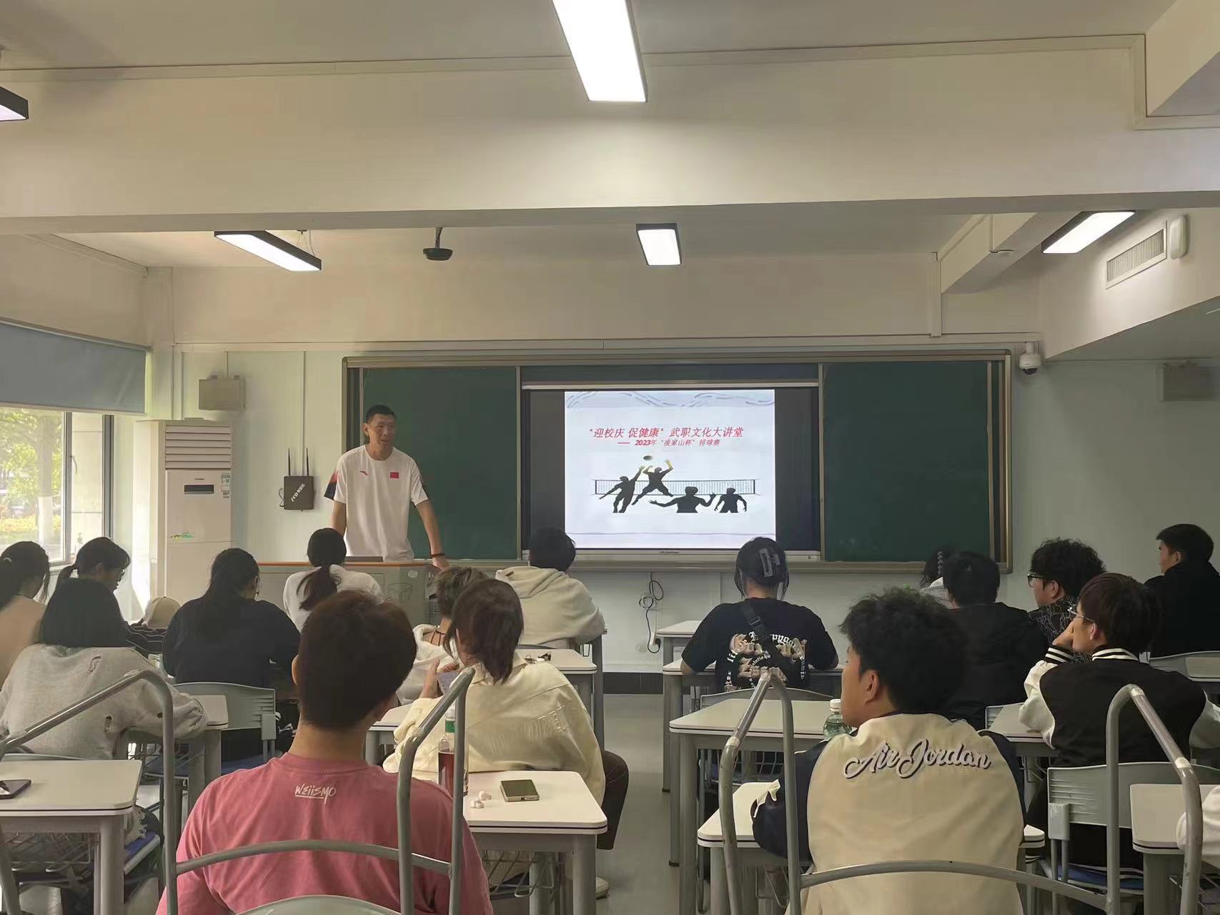 (通讯员 刘刚)2023年是我校建校50周年,为迎校庆,促进大学生身心健康发展,10月11日中午,在我校体育馆多媒体教室开展了“健康武职大讲堂”——“凌家山杯”排球运动文化推广与传播,来自全校11个院系近50名排球社团爱好者同学参加了本次活动。