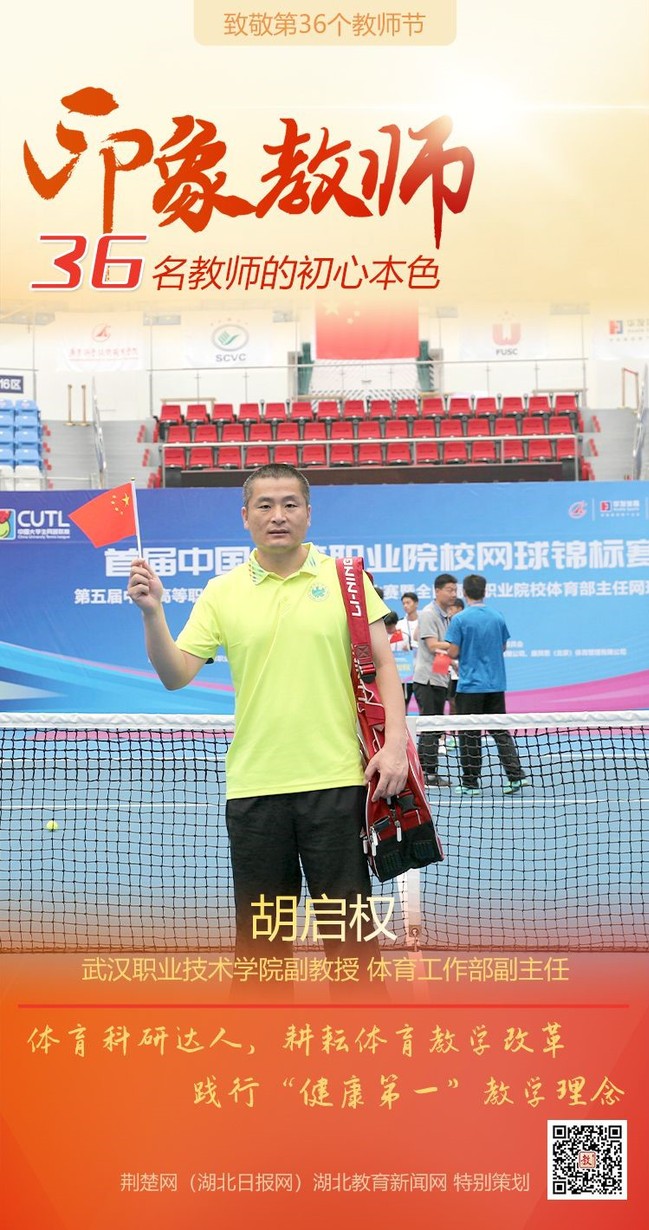 “胡启权在体育教学中注重校企合作育人,作为校方代表参与武汉网球公开赛(公开课)开发,创造性地通过顶级体育赛事吸引学生参与体育实践,并策划李娜等明星担当主讲教师等事项。”该校体育部主任汪胜介绍说,自“武网公开课”教学方案实施以来,受益学生达20多万,校企合作成果受到东湖高新区管委会好评并得到国际女子网球联合会WTA认可。