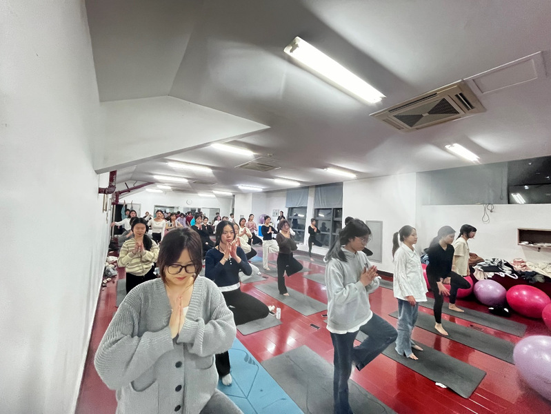 (大学生记者团 任梦婷 通讯员 杨敏)3月21日晚,武汉职业技术学院瑜伽协会近50名成员汇聚学校体育馆健美操馆,参加“靓三月 约瑜伽”线下活动。