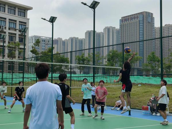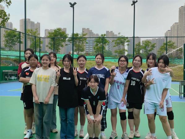赛场上,队员们摩拳擦掌、配合默契,发球、传球、垫球、拦网、扣球,每一次精彩的触球与得分都引来阵阵欢呼;场下观众们的呐喊助威声此起彼伏,展现了团队的力量,为比赛增添了浓厚的竞技氛围,成为学校一道独特而靓丽的风景线。