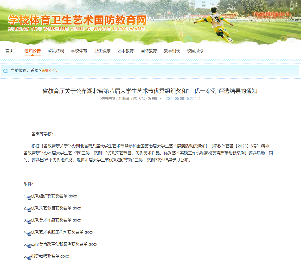湖北省第八届大学生艺术节高校美育改革创新案例获奖名单