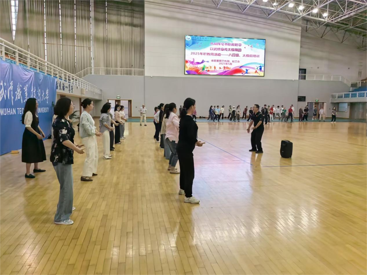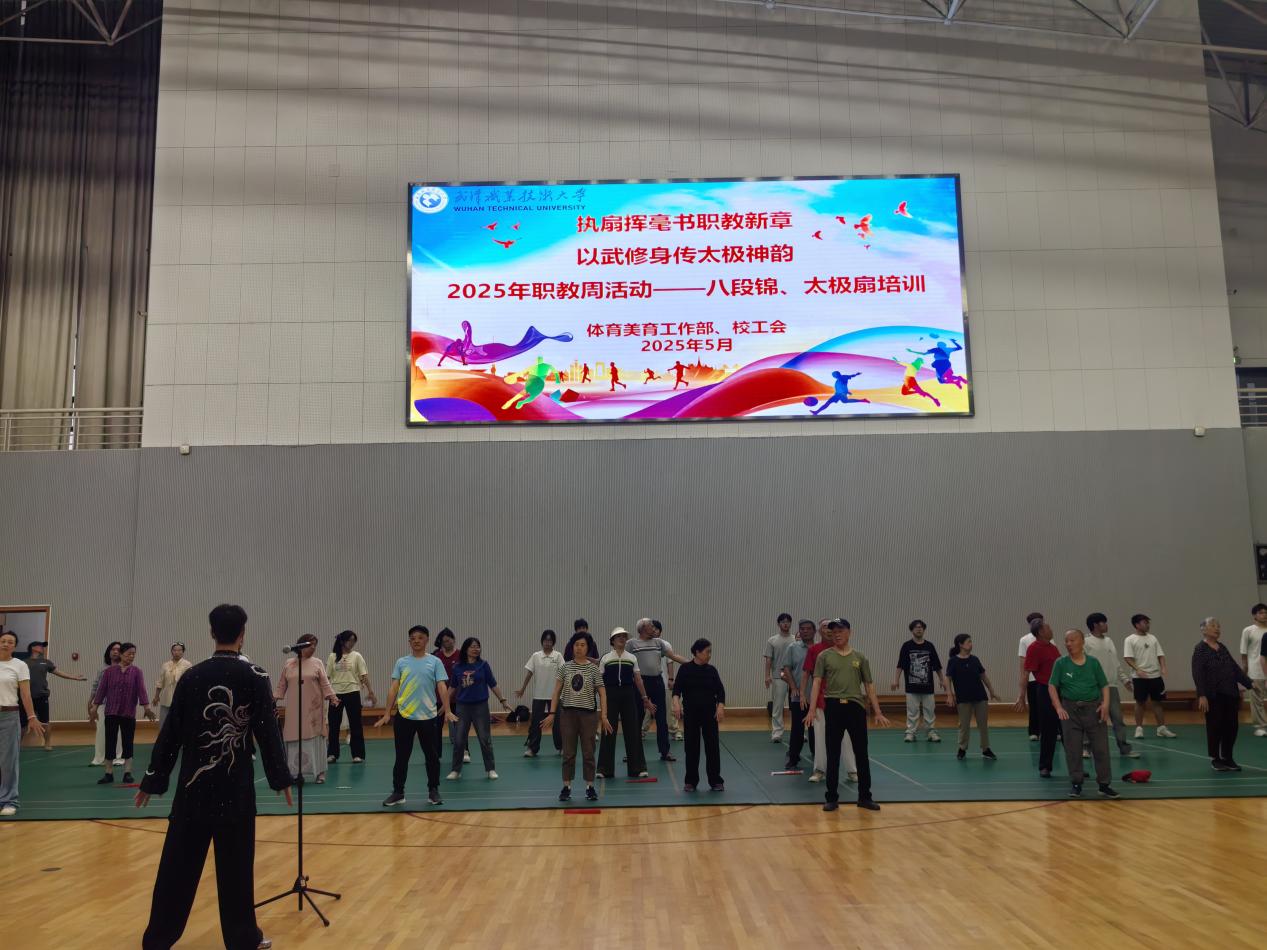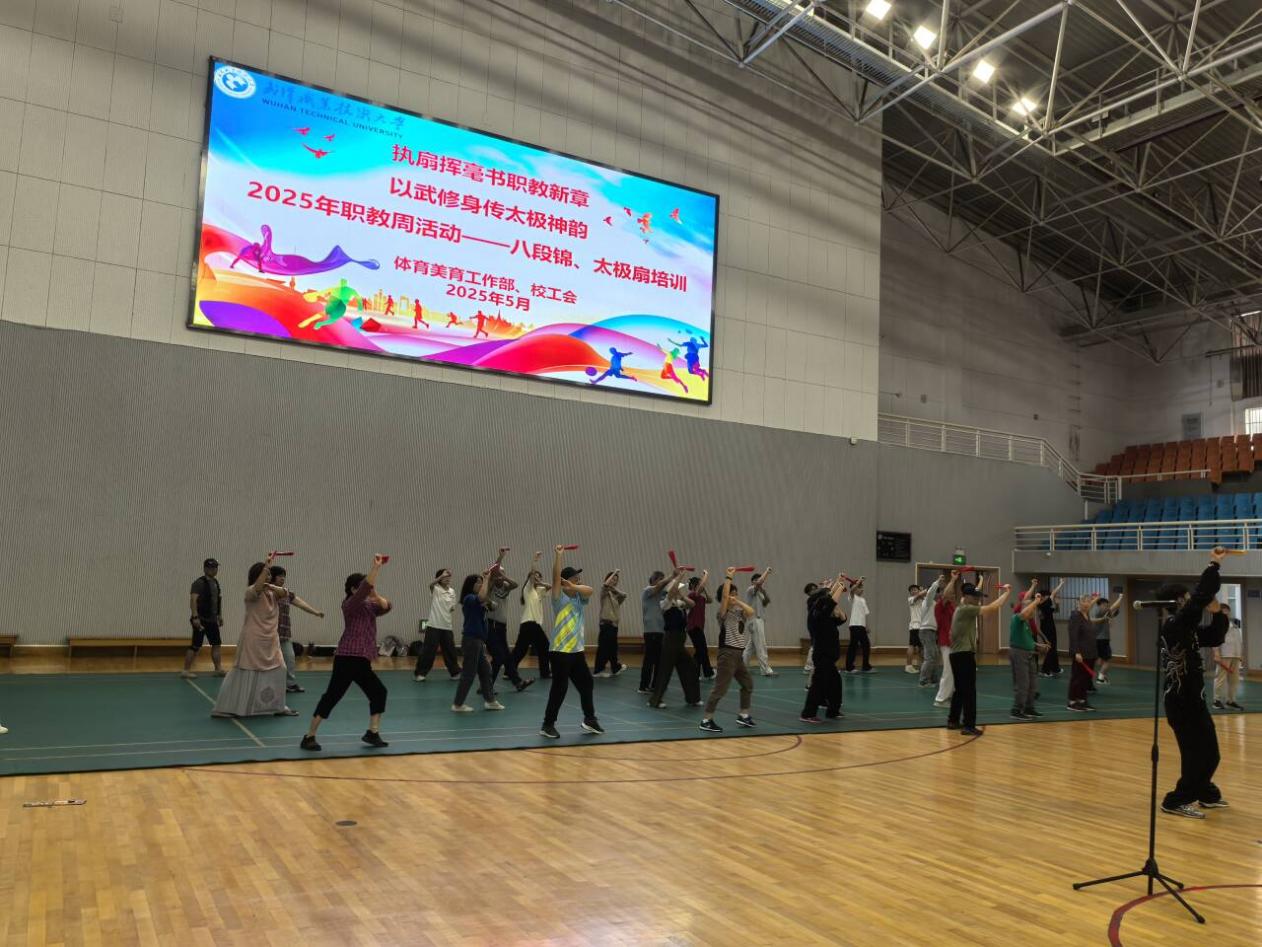 (通讯员 成盼盼)5 月 16 日上午,我校在光谷校区体育馆主馆成功举办 “执扇挥毫书职教新章,以武修身传太极神韵”2025 年职教周主题活动。此次活动特邀武术界实力名将李磊老师现场授课,携手体育美育工作部牛凯老师,带领师生共赴一场传统武术文化之旅。