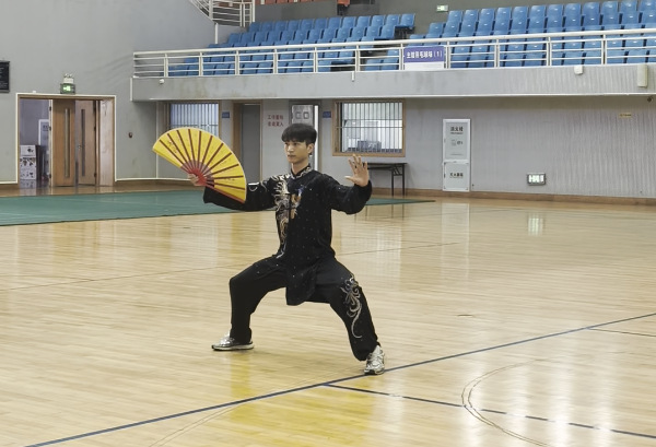 活动现场,李磊老师以其卓越的武术成就震撼全场。作为2024年金砖国家运动会太极剑第一名、2023年全国武术套路锦标赛太极剑第五名、2017年全国青少年武术套路冠军,同时拥有国家一级裁判员、健将称号的他,甫一亮相便赢得热烈掌声。李磊老师率先开展太极扇的培训与展示,他手持太极扇,伴随着悠扬舒缓的音乐,将太极的圆润柔和与扇子的凌厉刚劲完美融合。每一次开扇 “唰” 的脆响,配合着行云流水般的步法,刚柔并济的招式,引得在场师生连连赞叹。