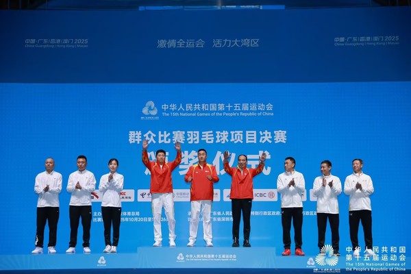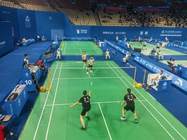 本次全运会群众羽毛球决赛规模盛大,吸引了全国26支代表队的515名运动员齐聚深圳,同场竞技。赛事设置丰富,涵盖混合团体赛(包含男双、女双、混双三个项目)和单项赛(男双、女双两个项目),并根据运动员年龄进行了精细化分组,共设A组(25-34岁,仅设团体赛)、B组(35-44岁)、C组(45-54岁)和D组(55-64 岁)四个组别。515 名参赛选手围绕10枚金牌展开了为期7天的激烈角逐,在赛场上尽情挥洒汗水,充分诠释了“全民全运”的独特魅力,让群众体育的活力与激情感染了每一位在场观众。