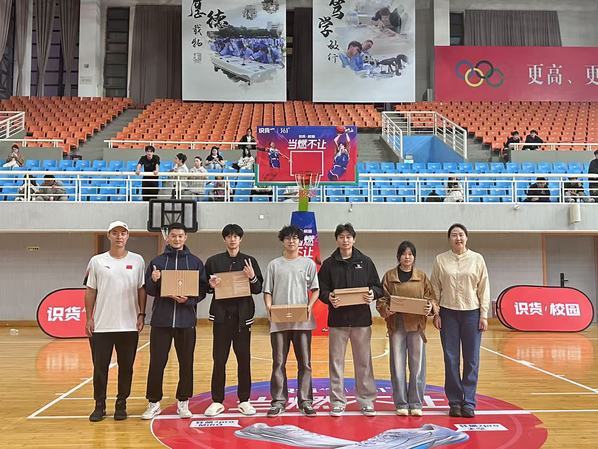 决赛日的校体育馆气氛热烈。除了紧张刺激的冠亚军争夺战,中场休息时特别设置的抽奖环节更是将全场气氛推向了另一个高潮。体育美育工作部主任闫升老师亲临现场,作为抽奖嘉宾,为幸运学子送上了包括品牌运动球鞋、专业篮球、定制球衣在内的丰厚奖品。这一创新环节,极大地激发了学生们的参与感与获得感,让体育赛事不仅是竞技的舞台,更成为欢乐的海洋和情感连接的纽带,真正从“要我参与”转变为“我要参与”,有效点燃了全体学生投身体育活动的巨大热情。